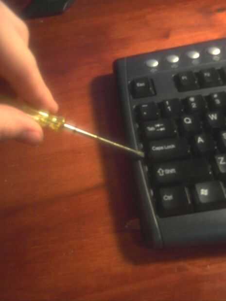Tomar el pequeño flathead destornillador y ponerla en la grieta entre el borde del teclado y la tecla Bloq Mayús.