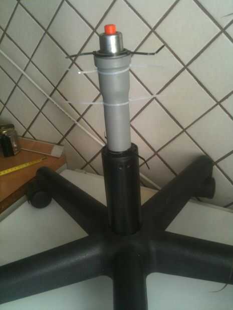 --atar dos ataduras de cremallera para hacer un bucle y envolver firmemente alrededor del tubo (un lazo en su parte más baja, donde el tubo de los PP hace contacto con el cilindro de puntal y otro lazo en su parte más elevada, donde se encuentra con el asiento) usando un par de pinzas si es necesario pero no tire demasiado ya que podrían dañar los lazos zip plástico;