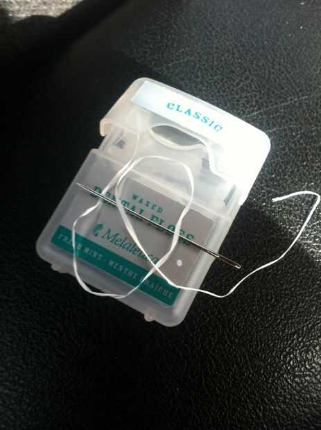 Un medio a grande de aguja-it deben tener un tamaño bastante bueno ojo para enhebrar el hilo. Y, sí, seda Dental - puede usar hilo de bordar u otros tipos de hilo, pero usé hilo dental porque es más durable.