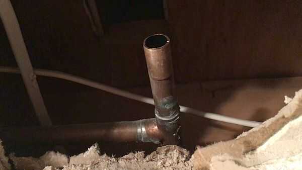 En el techo, corté la 2 pulgadas de la conexión T de cobre.