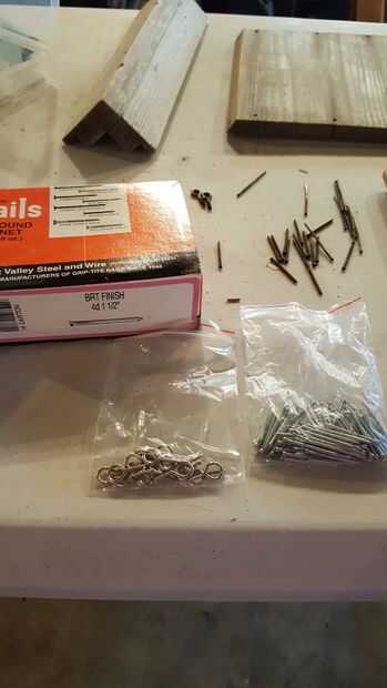 Después tienes los clavos y tornillos sacar usted pueden comprobar algunos de ellos no valen reutilizar. Encontré algunos nuevos clavos y tornillos de ojo que funcionan perfectamente para mí, pero tal vez usted es capaz de reutilizar tus clavos y tornillos. En ese caso eliminar el óxido o decolorar te puede frotar lana de acero o papel de lija en ellas.