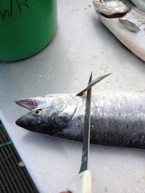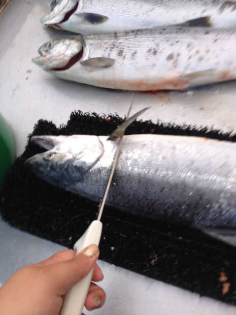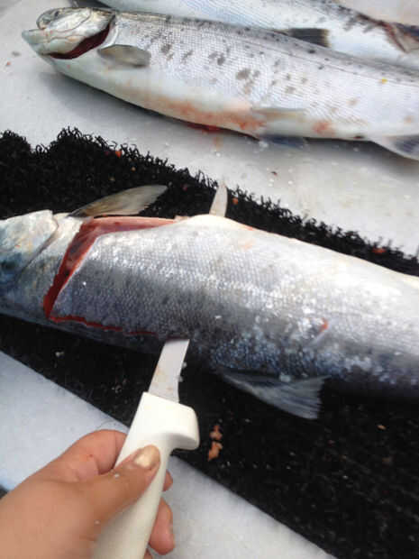 Cómo filetear un fresco capturados salmón (3 / 6 paso)