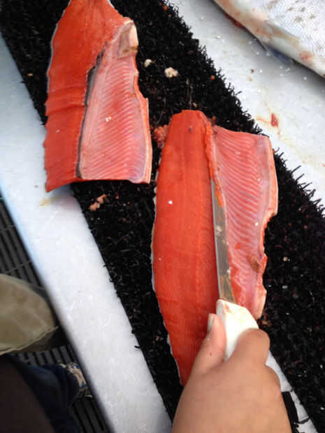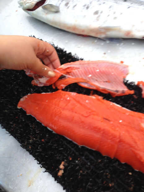 Después de quitar las costillas, todavía será objetivo en los filetes. Se pueden quitar con unas pinzas, alicates o pinzas hemostáticas antes de cocinar, o puede cogerlas de los peces como que comer. El objetivo es más fácil después de que los filetes se endurezca en el refrigerador. Muchas personas prefieren quitar todos los huesos antes de cocción o preparación. Nuestra familia hace.