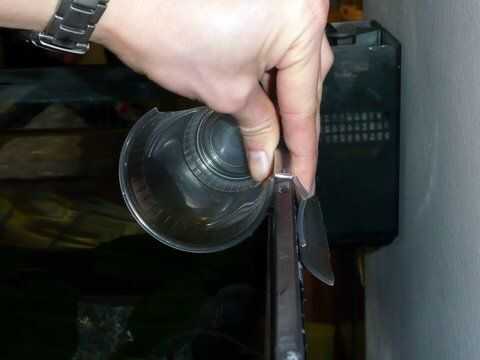 ¿Volver a la tarea, ver donde la solapa se dobla sobre el borde del tanque? Marcar con un rotulador y hacer otro recorte en el labio hay. Luego empuje la solapa hacia abajo con cierta fuerza que hace un pliegue. Por ahora su taza debería parecerse a la encimera de la manera que cuelga del tanque, excepto que está en el interior.