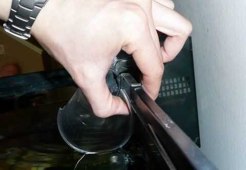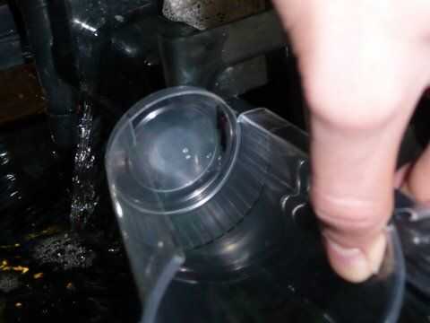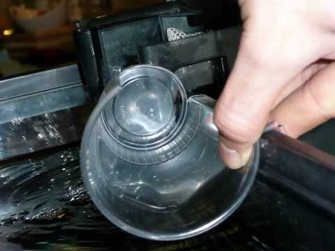 Realmente, es un proceso de ensayo y error. Ya que cada filtro se forma diferente, vas a tener que ser paciente y corte un poco a la vez. Usted puede ser tentado a hacer un agujero grande como lo hice con un prototipo, pero luego te darás cuenta de lo que aprendí de primera mano: el agujero de fugas de agua en el tubo de admisión y hace la Copa demasiado débil para soportar la caída de agua limpia. Así soportar la frustración, viruta lejos en él y usted acabará con un ajuste cómodo y personalizado entre la Copa y la encimera.