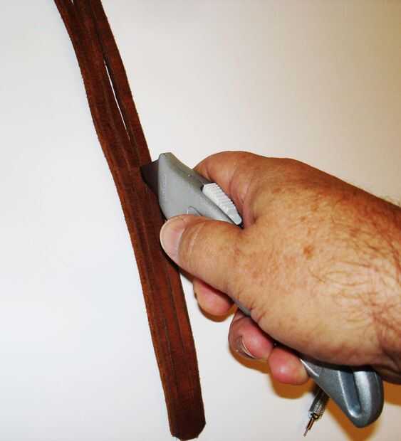 Una navaja filosa corta cuero muy bien.  Utilice una hoja nueva.