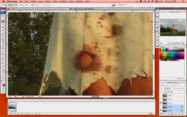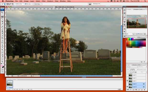 Usted deberá seleccionar la herramienta lazo y se usa para describir el modelo. Esto es cómo usted desconectará a la persona. Una vez tienes el modelo seleccionado, o contorneado, vaya a la ficha seleccionar luego inversa haga clic en eliminar. Esto le dejará con sólo su modelo. Poner la imagen de la modelo sobre el fondo en el menú de capas en la parte inferior derecha de la pantalla.