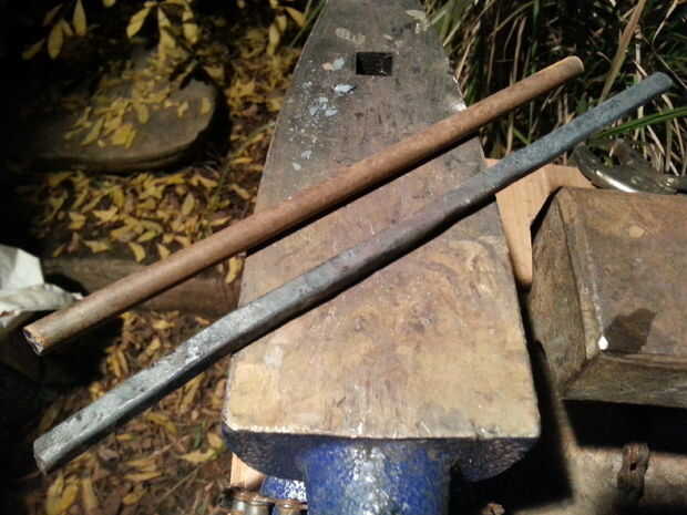 ** Para este abrelatas de botella, podría se utilizado una plaza bar y saltarse este paso. Hay dos razones para no hacerlo. En primer lugar, me gusta las irregularidades leves causadas por toda la sección del metal de la forja de la mano. Hace de cada pieza única, añadir texturas interesantes hasta el producto terminado. Segundo lugar, esta barra redonda es lo que estaba disponible en el momento. El único límite a lo que se puede crear con la fragua es el límite de tu imaginación.