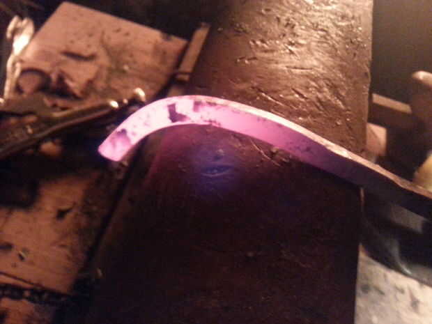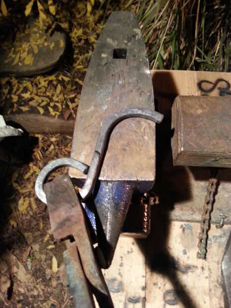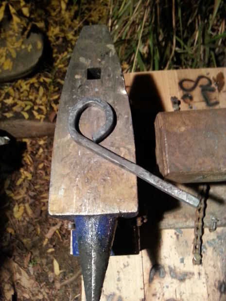 Una vez que la curva comienza a forma, necesita libre forma el resto del bucle pulsando la barra en diferentes ángulos sobre la faz del yunque. También puede utilizar un cuerno del yunque a forma el bucle.