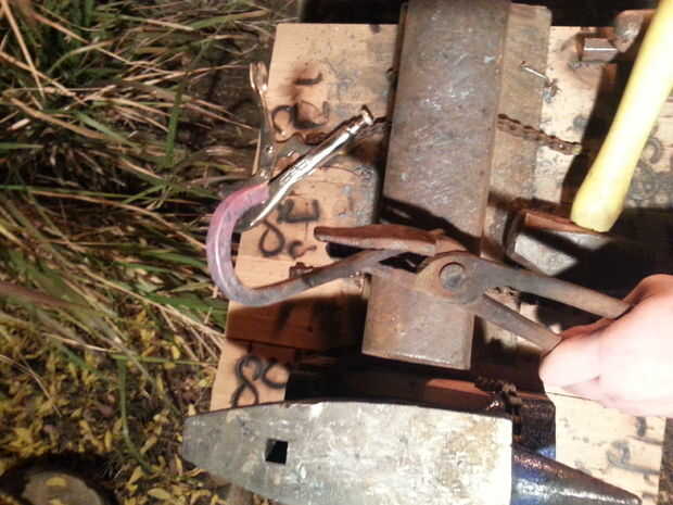 Si el metal no se la forma que desea para ser paciente con él. Recalentar la barra y seguir trabajando de diferentes maneras hasta conseguir la forma que desee. Tomar fotografías de este Instructable había distraído me forme uno de los bares, y que 8 resultó un poco más locos que los demás. Recalienta, golpearlo más y que resultó para ser la que mejor se fuera del grupo.