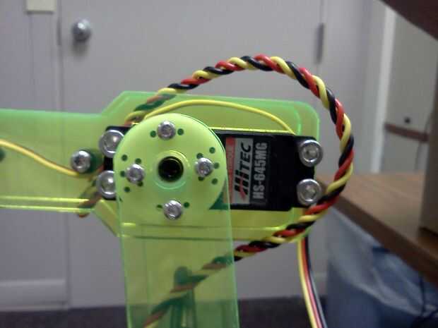 el brazo robótico agarra un objeto después de que detecta con el detector de movimiento y luego se mueve en un lugar específico.lista de partes:1,3 servos2. detector de movimiento infrarrojo pasivo: http://www.sparkfun.com/products/86303. arduino uno