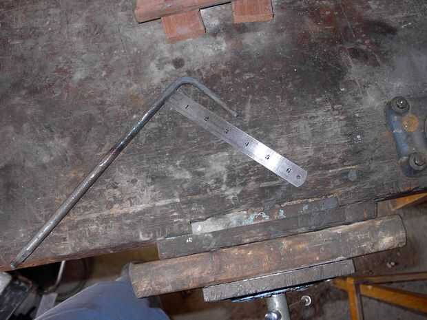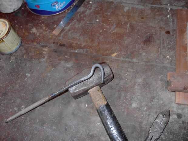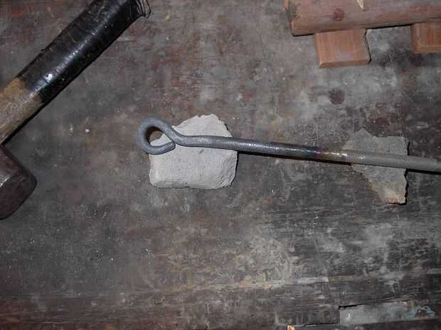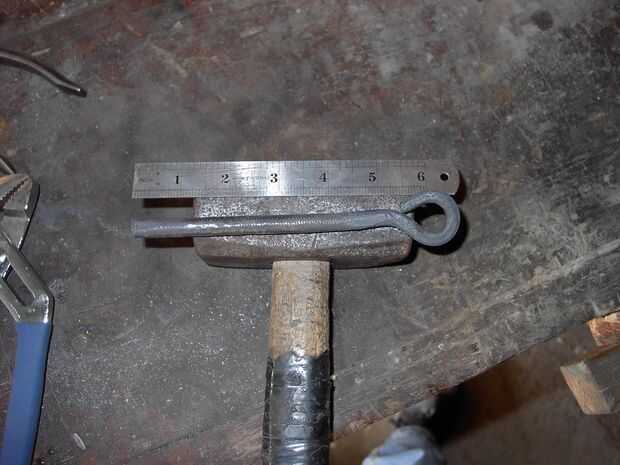 Finalmente en este paso, terminar la bendification empujando el extremo del acero más para cumplir con la parte principal de la barra. Después de eso, yo caliente-cortó el resto del archivo, que no había tierra de por lo que era más pequeño y más fácil trabajar con. Ahora sus cerca de 6 pulgadas de largo con un lazo en el extremo.