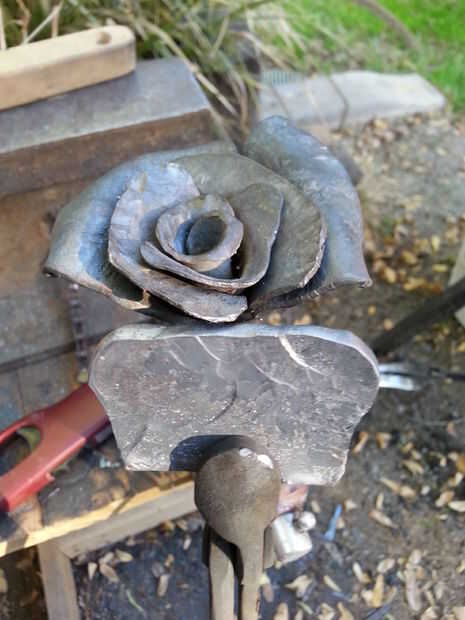 El proceso para hacer este pétalo es el mismo que los otros dos pétalos exteriores, pero más tiempo se debe poner en puesta a punto la forma del pétalo con el fin de atender a la forma de la rosa. Cuando me estaba haciendo el último pétalo, que tenía que cortar una porción de la parte inferior de y moler abajo de las esquinas inferiores en orden para que calcen bien. Hacer lo que usted necesita hacer para obtener la forma correcta, pero recuerda que es mucho más fácil afeitarse un poco de metal lo que es más corta y tiene que volver a empezar.