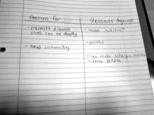 Un gráfico de T para ser particularmente útil ya que te permite perfectamente lista, al lado, dos puntos de vista opuestos con detalles de soporte para cada lado a continuación. Organizar la información de esta manera se presta fácilmente a la creación de un argumento escrito.
