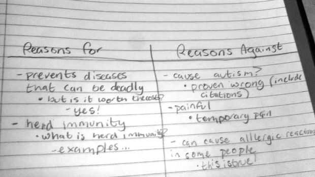 Hay varios tipos de información que quiera incluir en su carta de T para este paso. Por ejemplo, podría incluir preguntas que un lector pudiera tener acerca de una reclamación. En su columna "razones", responder a argumentos comunes contra su posición, o nota donde usted concede que un punto de la oposición es válido. Tome nota de que puede incluir algunos ejemplos de su investigación a ayudarle cuando realmente empiezas a poner el argumento en forma de párrafo.