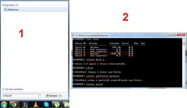 1 - ir al botón Inicio de windows, escriba diskpart y presione "enter"