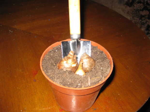 ¿Qué podría ser más simple? Llena la maceta con tierra, hacer un gran agujero en el suelo, coloque un par de bulbos en la tierra unas pulgadas sobre el suelo y el agua. No olvide colocar la tapa en la olla para que no se daño por agua en el alféizar de la ventana. Asimismo, no ponga demasiados focos en la misma olla o que promoverá crecimiento de pobre flor.