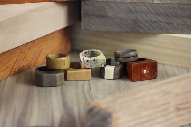 Hace tu propia joyería de madera con restos de madera de su taller y CNC. Utilizar restos de maderas como ébano, palo de rosa o ceniza, usado en la guitarra que hace, para reciclar y obtener un gran resultado y la belleza. Como la música es mi vida,