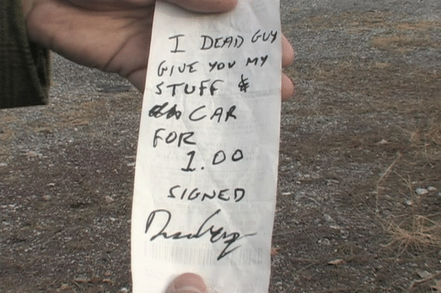 No te olvides de dejar una nota en el cuerpo, que hace que se vea como el chico muerto dieron sus cosas y coche por $1.00. Escribir algo como esto: ", Muerto te doy mi materia y mi coche para $1,00 firmado, muerto chico"