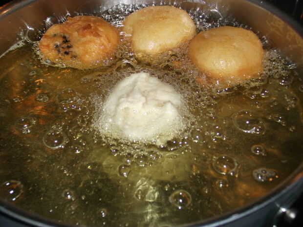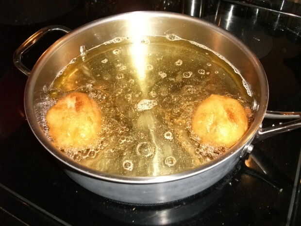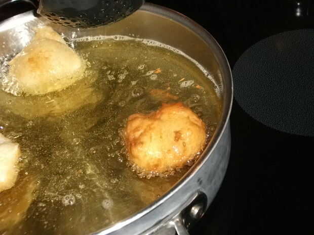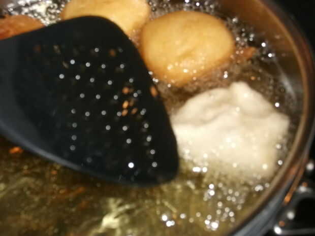 Continuamente salpicaduras de aceite caliente en los lados superiores de los Oreos mientras está cocinando. Esto asegura que se cocinan en todo (al menos en teoría)
