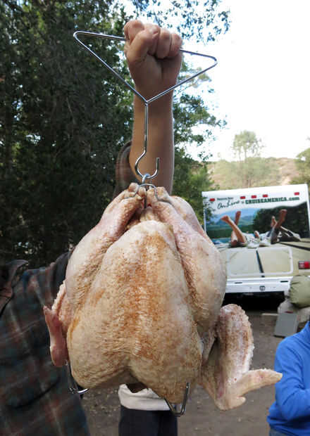 Para nuestro pavo, nosotros sólo frota hacia abajo con sal, pimienta y condimento de ajo.