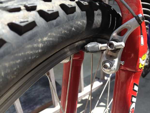 1. cuando se tira la palanca, la parte inferior de la zapata de freno está por debajo del borde (a veces se puede ver esto desde el otro lado de la fim)