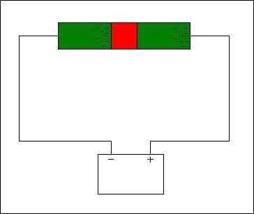 Conectar una batería al material tipo N mucho no porque los electrones libres en el extremo positivo fueron atraídos al polo positivo de la batería dejando una zona de agotamiento en el cruce del material de tipo P.