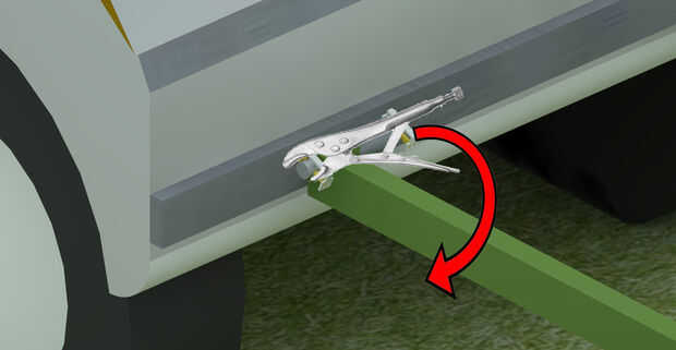Consejo: A veces el estrés de conducir sobre las colinas y curvas puede causar los conexión pins girar en posiciones incómodas (imagen 1) que le impiden sacar los pasadores de bisagra. Si esto sucede, usted puede utilizar el vice grips para ayudar a girar los pernos en la posición estándar que hará más fácil quitar los pasadores de bisagra (imagen 2).