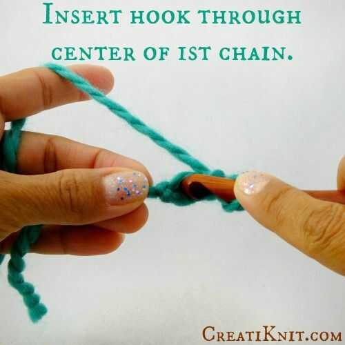 Paso 3: A continuación, inserte el gancho a través del centro de la primera cadena.