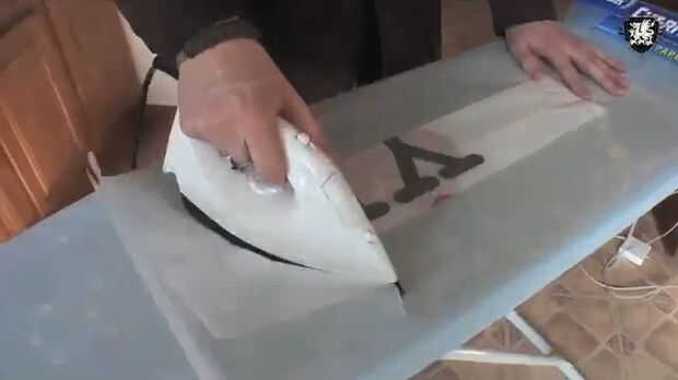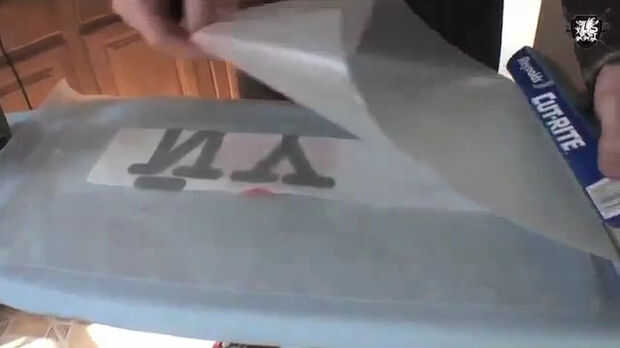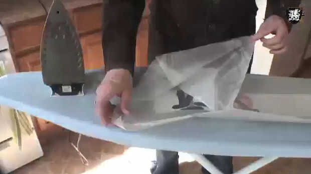 Sandwich el plástico entre el papel encerado y comience a planchar el papel encerado, manteniéndolo en movimiento en todo momento. Hierro cada lado durante 20-30 segundos.