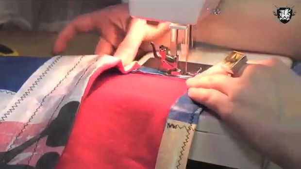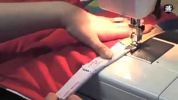 Lugar la derecha caso Junta dejando espacio para la aleta. Coser a ambos lados y gire derecha paseo hacia fuera.