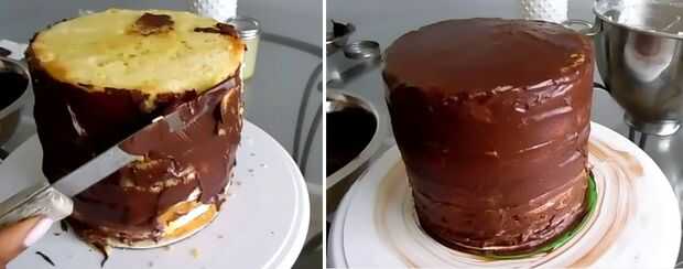 Básicamente actúa como la capa de residuos, que será la más fina capa de ganache. Una vez que la torta está cubierta completamente y el exceso ha sido eliminado como necesitan, refrigerar por al menos 15 minutos.