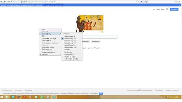 Ahora vaya a la página web específica y click derecho sobre el fondo, seleccione volver a cargar cada X número de segundos.