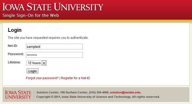 Utilizar su Net-ID y contraseña para acceder a la página. Asegúrese de que usted está en un. iastate.edu extensión antes de escribir siempre tu contraseña!