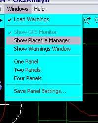 Placefiles son archivos que se pueden agregar a los recursos genéticos que mostrará diferentes datos en la pantalla junto con los datos de radar. Miembros de la red de Spotter y sus ubicaciones, METAR en todo el estado, las discusiones de la mesoescala, y tiempo severo relojes.