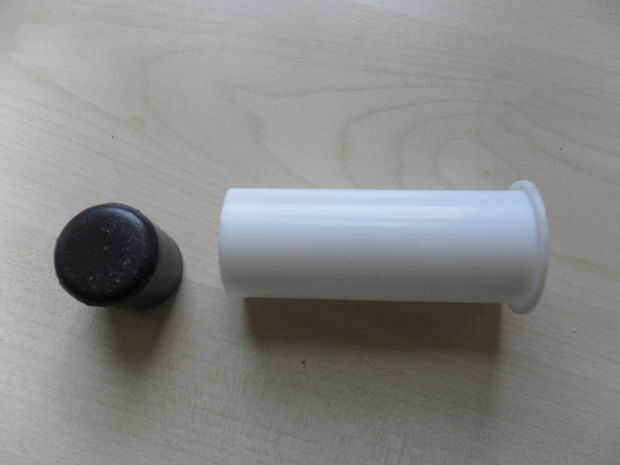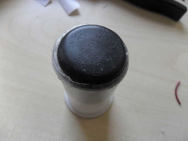 Tomar un trozo de tubo y corte en tamaño adecuado, luego inserte y pegamento caliente el tapón.