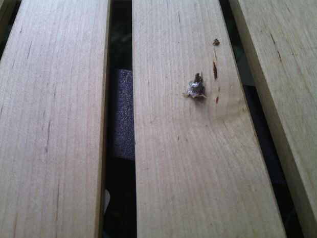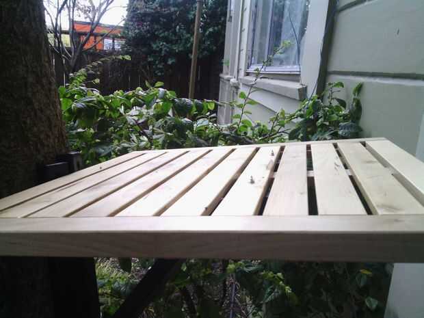 Pone su plataforma en los soportes de estanterías, asegurándose de que todo está ajustado y use tornillos para fijar las plataformas a los soportes. En el primer estante sólo utilicé un destornillador y subió a través de los orificios previamente perforados de los soportes de estanterías, pero los tornillos eran demasiado largos y así terminé tener que cortarlos. Usé una taladradora para el resto de mis plataformas y atornillada por la parte superior.