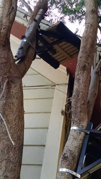 es como el carro de una compañía de mudanzas muebles gigante para mover árboles.Este método funciona muy bien para los árboles que un vehículo no puede llegar a.Cuando hay acceso de vehículos el método a-Frame de árbol en movimiento funciona muy bien