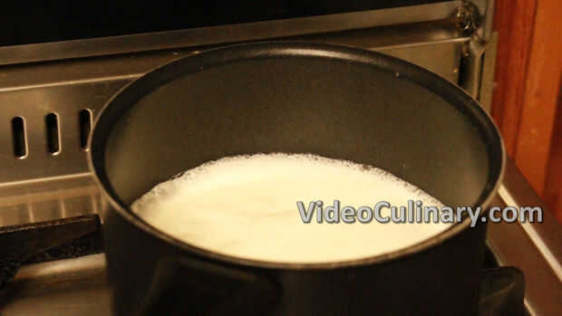 Colocar 250ml de crema en una olla y llevar a fuego lento. Picar 250 gramos de chocolate negro picado y colocarla en un recipiente