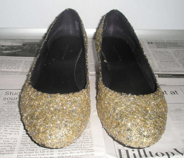 estoy muy contento de presentar mis zapatos modificados para requisitos particulares con brillo! Y ahora, te digo Cómo renovar tu zapatos viejos!Paso 1: , Necesitará: modge podge, purpurina y masking tape.Paso 2: mezclé negro y plata brillo, en un va