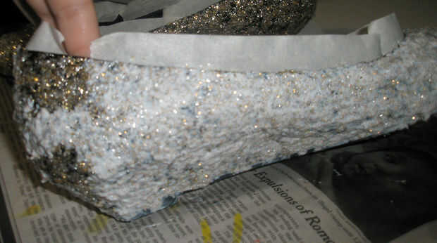 Es importante que cada capa se seque completamente antes de aplicar otra capa. Tiempo de secado depende de cómo espesa es la mezcla del pegamento del brillo y cómo grueso se aplica. Para mí, cada capa tomó varias horas para secar. Usted probablemente querrá planear hacer cada capa en una sala de estar separada.