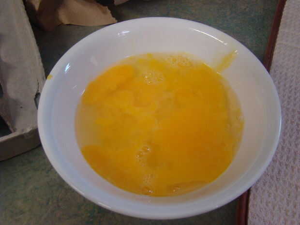 Cubrir el huevo líquido y ponerlo en la nevera para referencia futura.  Generalmente los coloca en pequeños recipientes con 2 o 3 huevos en cada contenedor.  Que hace más fácil de usar para la torta, empanada de huevo, huevos revueltos, etc., etc., etc..