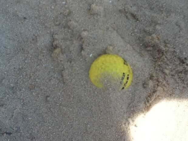 2. durante el swing que desea entrar en la arena aproximadamente 3inches detrás de la bola