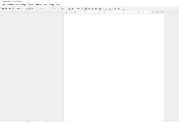 Nu borde din skärm se ut ungefär la såhär (se bild). Este es din nya arbetsyta för din kommande rapport. Los hombres sólo nu es det endast du själv som kan se innehållet på detta dokument då du inte har bjudit en av några vänner de dina. Därför es det dags att ta reda på hur du bjuder en dina vänner hasta arbete ett.