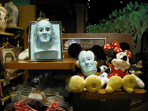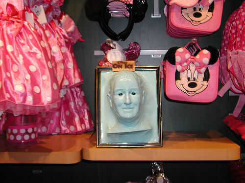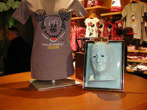 - Basado en su investigación observacional, tratar de encontrar áreas que encajan dentro de la "temática" de tus souvenirs. Por ejemplo, si usted tiene un ratón de Mickey, gritando que él es un icono del pop, le pegan con las felpas de Mickey Mouse. Si usted tiene una cabeza gigante de Disney, sobresalen por algunas camisetas originales de Walt Disney.