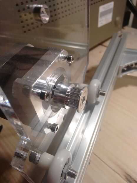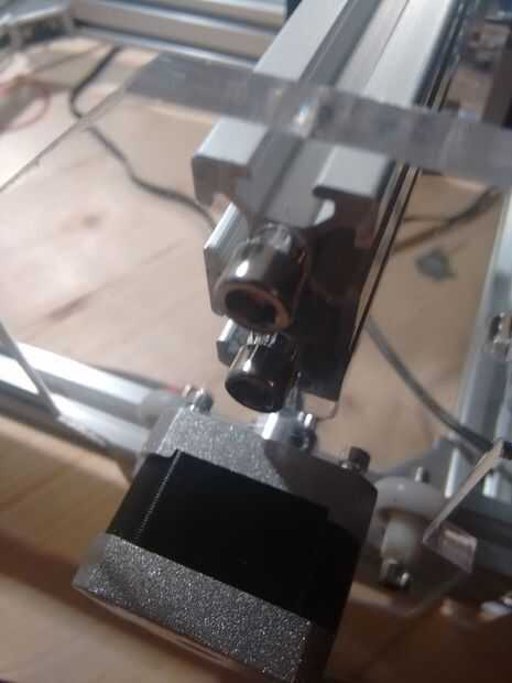 (2) Deslice el conjunto del láser en la extrusión de aluminio restantes (cuadro 2) (ignore la correa de momento)