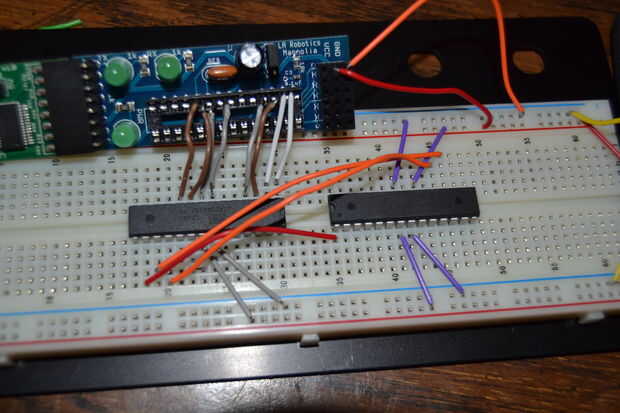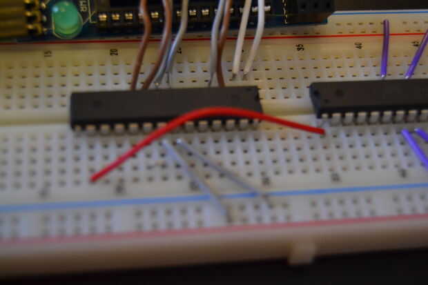 Conectar el pin 19 al pin 19. -Tuve que romper el pin 19 (izquierda) del resto del desorden mezclado y conecte al pin 19 a la derecha.