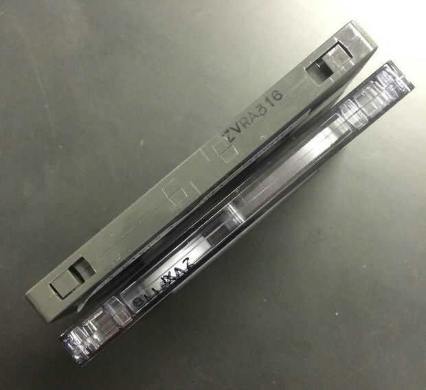 Cómo una baraja dice la cinta aparte para jugar es las muescas en la parte superior (mostrado arriba). Cintas de cromo tienen muescas adicionales junto a las fichas de protección contra escritura.