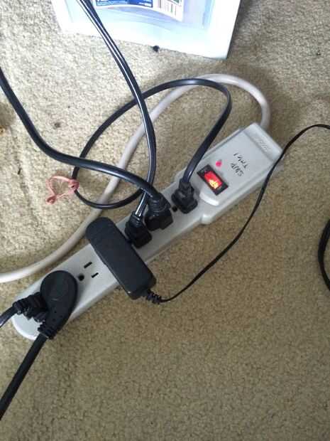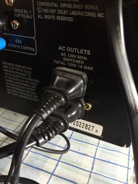 Nota: Algunos receptores, como el mío, tienen salidas en la parte posterior de alimentación de AC. Estos pueden utilizarse para alimentar su equipo de audio, como se muestra arriba. Tengo mi platina tocadiscos conectado y todo funciona bien.