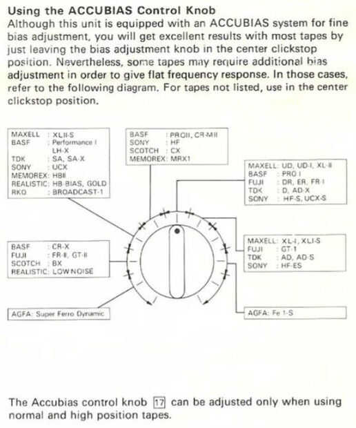 Sesgo de la cinta cambia cómo el sonido se envía a la cinta. Con sesgo incorrecta, una cinta de sonido fangoso y pobre. Es un diagrama de sesgo cinta de cassettes de Onkyo, como el que utilizo para grabar. Dependiendo de su cubierta, probar y encontrar a una guía de sesgo si la cubierta tiene una perilla para él.